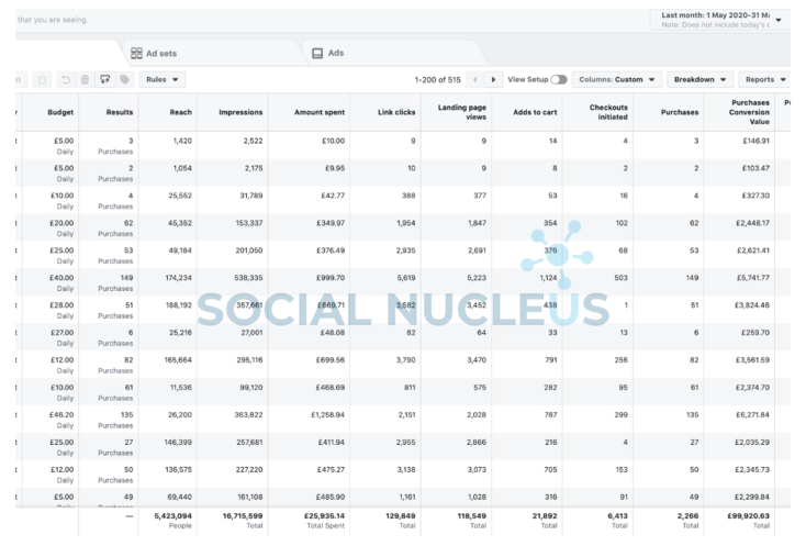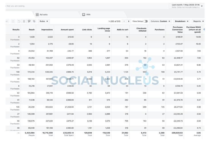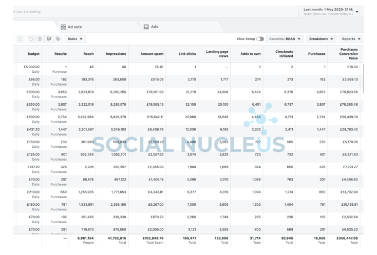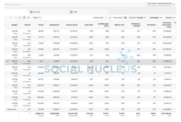 Knowing what we knew now, it was time to scale in May. We worked out the logistics with the client. How much we can scale by without running out of stock or breaking the system. We wanted to make sure we could keep the momentum gained. Plans had been put in place with the supplier, fulfilment centre, customer service team and of course, Social Nucleus (us).