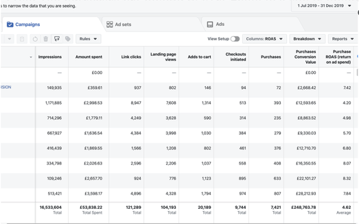 Here's an inside view to the back-end of some of our Facebook Ad Results generated for eCommerce clients. Get an idea of what we can achieve for you!