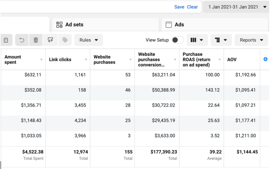They came to us in December 2020 wanting to scale their business to the next level in 2021 using Facebook ads.