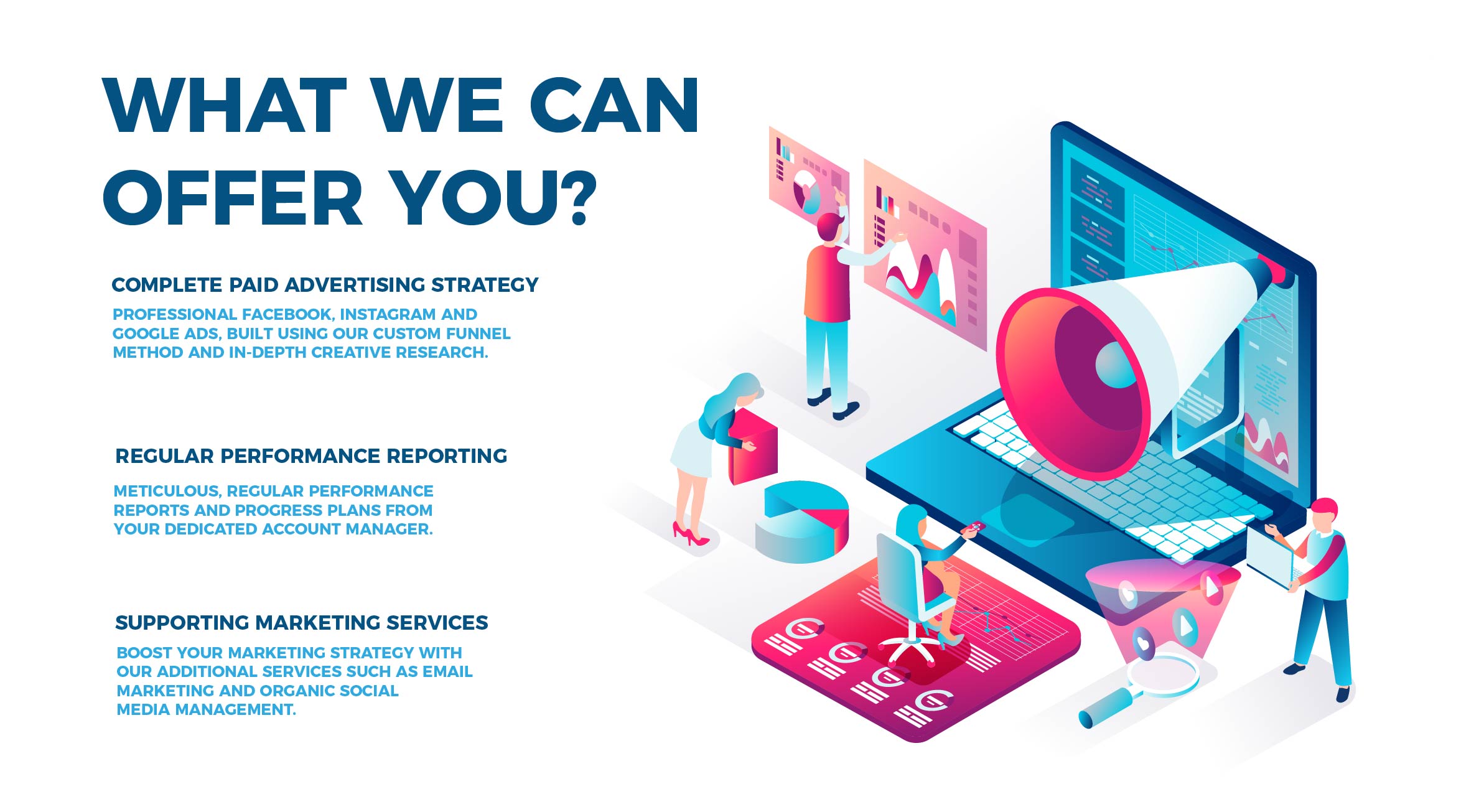 We’ll discuss what we can do for you with the help of our powerful paid ad strategy. We’ll evaluate your current account and talk strategy to turn your ad spend into leads. Fill in the form to find a suitable time and date to speak to one of our Ad Experts.