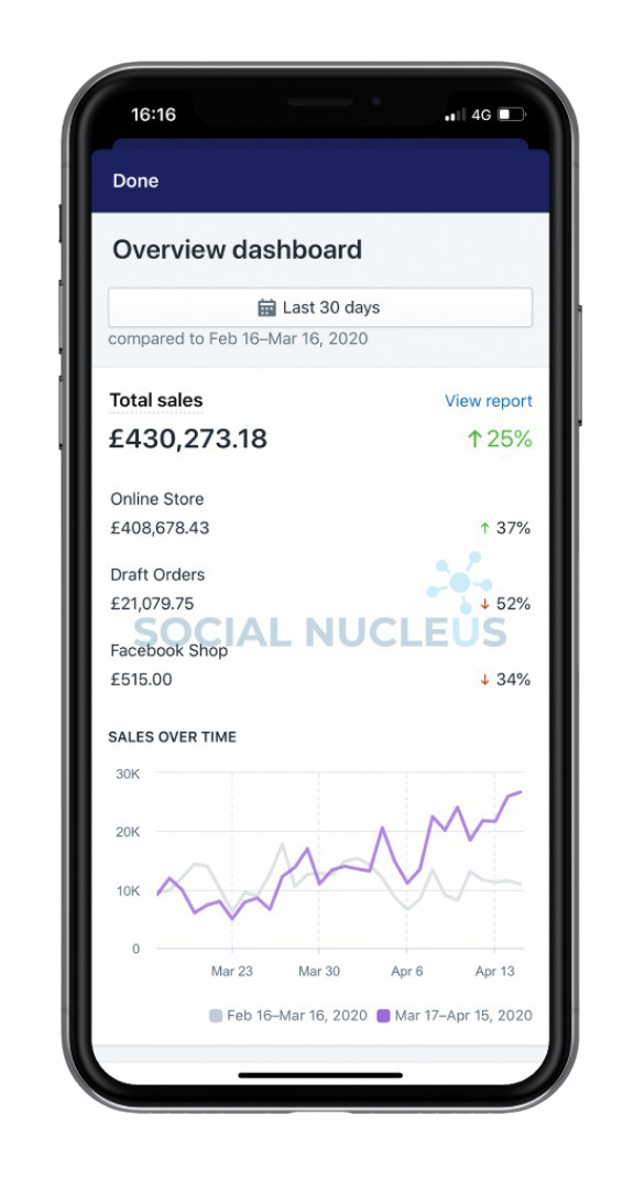 1,961% increase in revenue in first 5 months working with Social Nucleus = £311,024.28 in revenue.