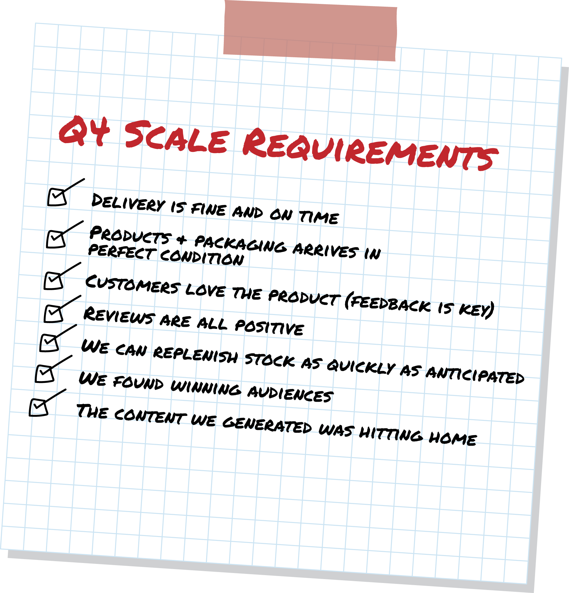 Going into Q4 we knew we wanted to scale and here are a few requirements before we do so: