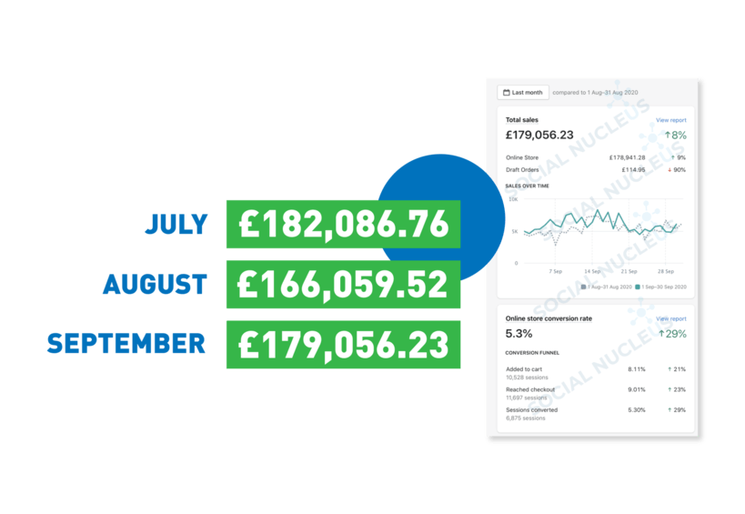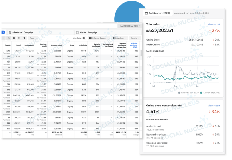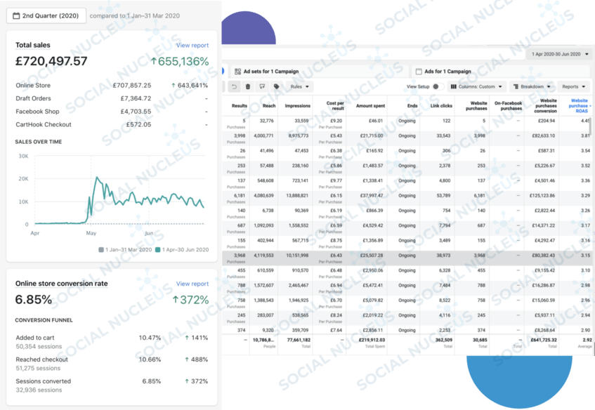 We spent £219,912.03 on ads and returned £720,947.57 in sales giving the client an attributed ROAS (return on ad spend) for the Quarter of 2.92.