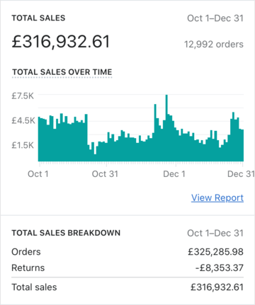 "Generated £443,064.77 total revenue in 3 months."
