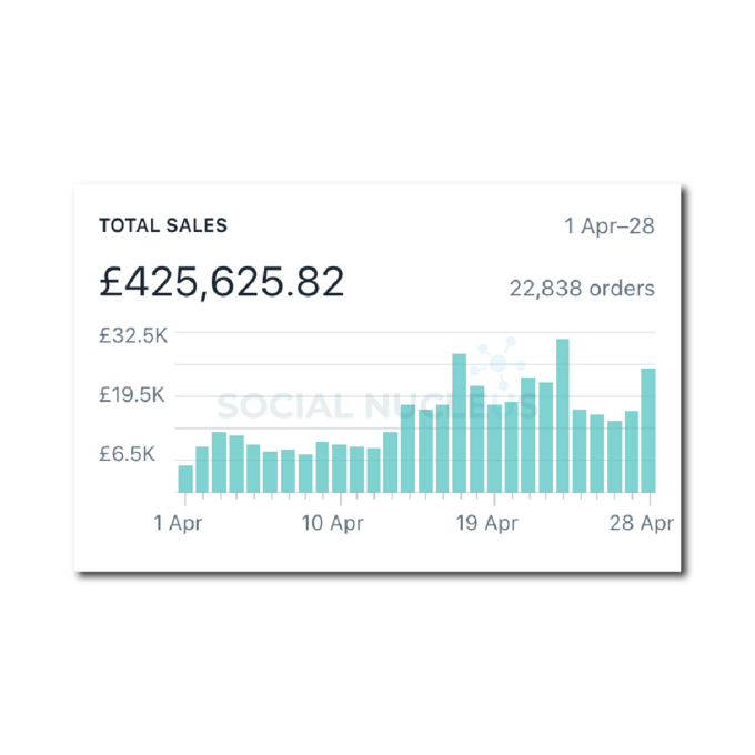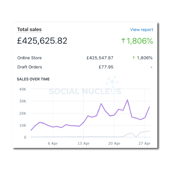Within a few of months of running our proven funnel, working on & optimising all stages. The brands sales grew by 1,806%. Bringing in over 21,000 sales in a single month. Generating £407,626.11 in the process.