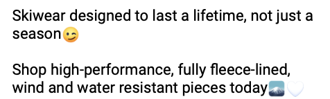 We knew that we also needed a strategy post-Black Friday, so we focused on 'Ski Season'. With 'Ski Season' being such a short period of the year, we knew we had to act fast. We utilised specific ski-season oriented creatives to keep our brand relevant and engaging to current audiences.